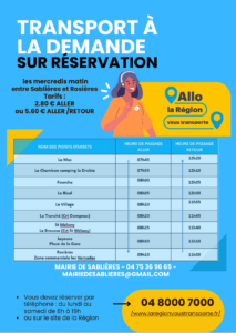 Chaque mercredi matin, la commune de Sablières met à disposition de ses habitants un car qui relie la commune à Joyeuse et Rosières. Ce service permet à chacun d’accéder au marché, à la poste, aux commerces et aux supermarchés.